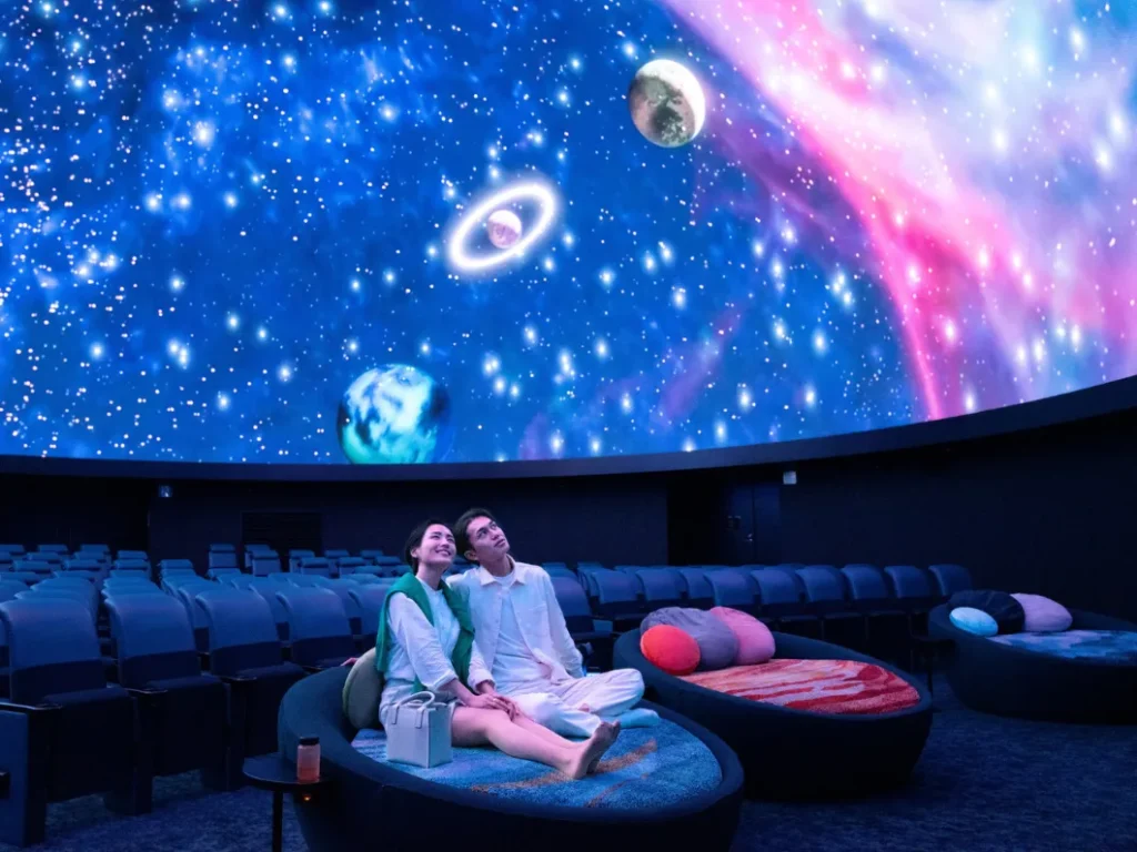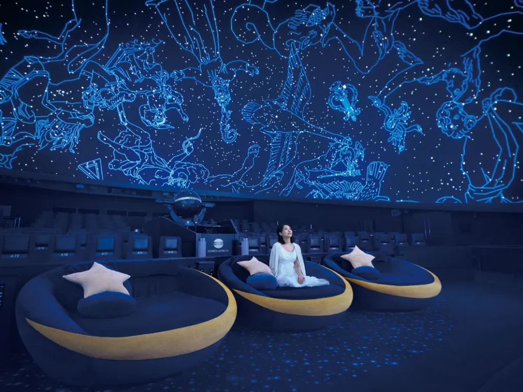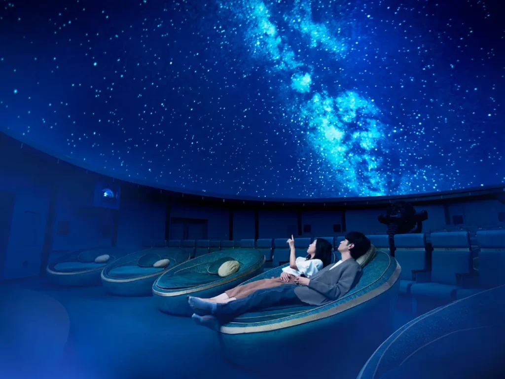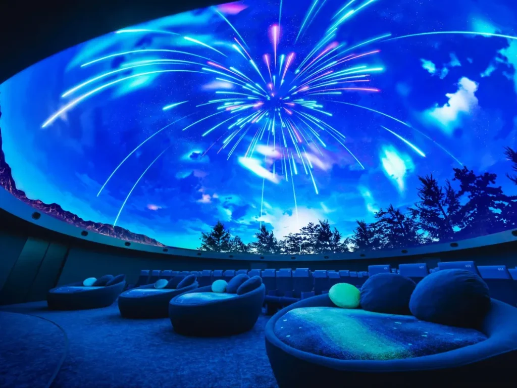 本企画はプラネタリウム本編の上映前に行われる幕間映像で、入場後の5〜10分間、ふわりと浮かぶランタンや柔らかに揺れるキャンドルがドームいっぱいに広がり、星空の下で過ごす心温まるひとときを映し出す。