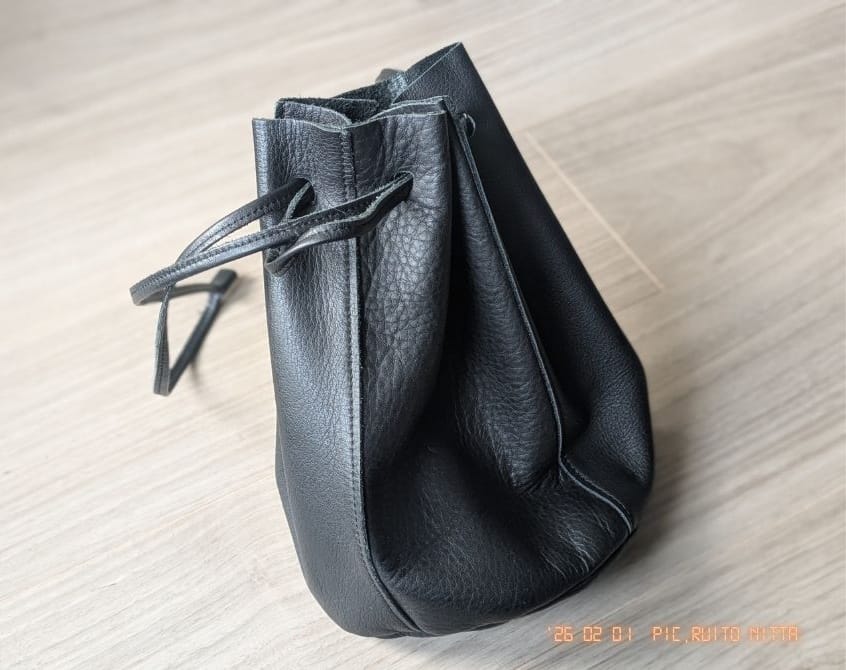 ”noies(ノイエス)”2WAY革巾着バッグ、ズボラでも気負わず使える